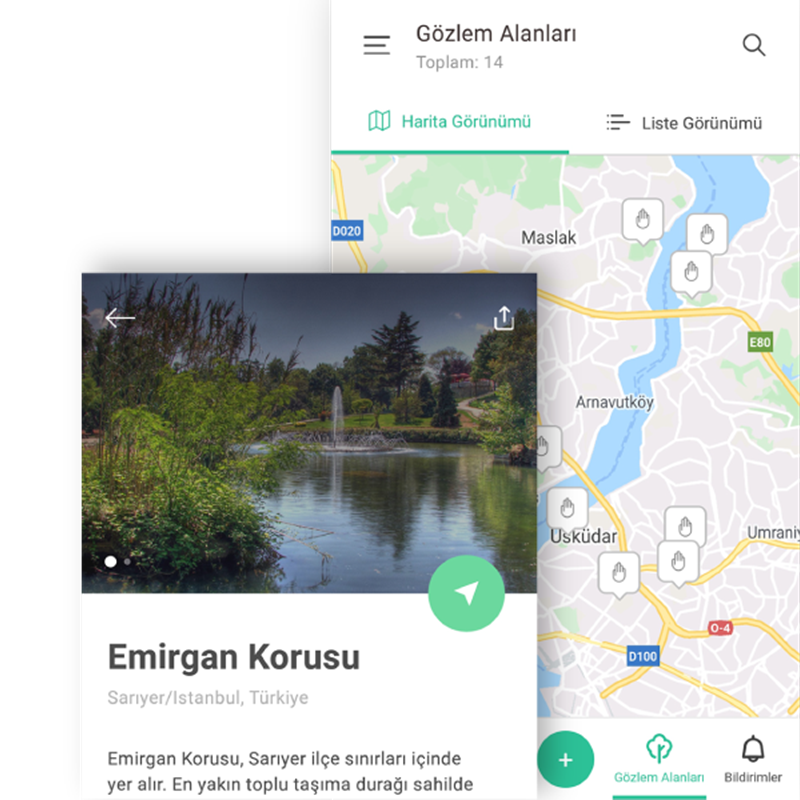 Doğa Kaşifi ile tanımladığınız bitki türlerini kayıt edebilir ve kişisel gözlem listenizi oluşturabilirsiniz. Ayrıca kayıtlarınızı harita üzerinde görüntüleyerek gözlem yolculuğunuzu görselleştirebilirsiniz.